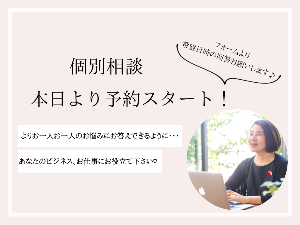 月に1回の個別相談、コーチングのスペシャリストでもある洋子さんにマンツーマンでご相談できる貴重な時間です。